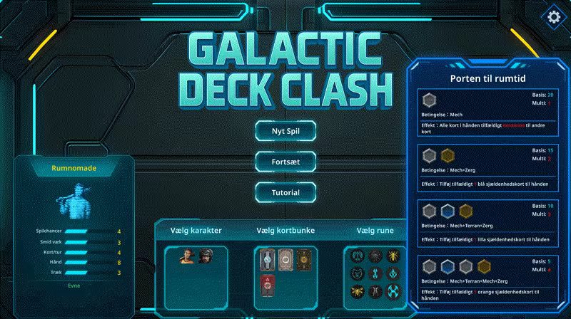 Et roguelike deckbuilder med et rumtema. Saml mange kort, styr forskellige racer og udforsk utallige kombinationer. Skift effekter frit og brug udstyr og runer til at styrke dig selv og besejre stærke fjender igen og igen.