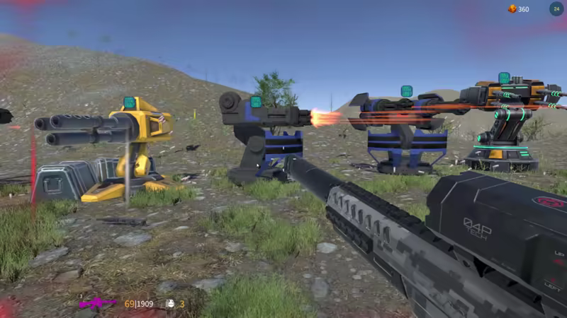 FPS with random gun drops, large map loot and robots meat pigeon mode. The mechanics are simple to build, simple strategize play mode.