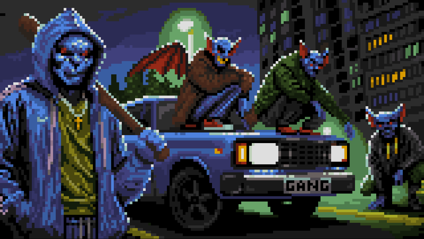 • A pixel-art side-scrolling adventure with nonlinear exploration and a deep dialogue system.