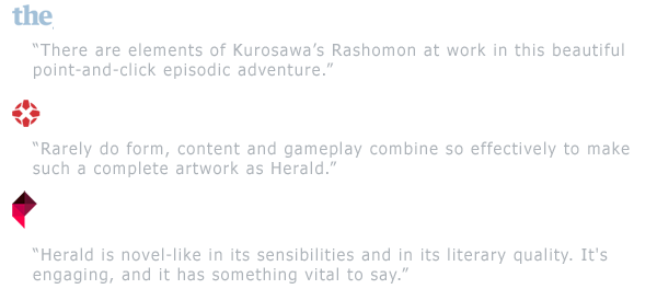• Herald's diverse cast of characters is brought to life by beautifully animated portraits, and the performances of thirteen talented voice actors.