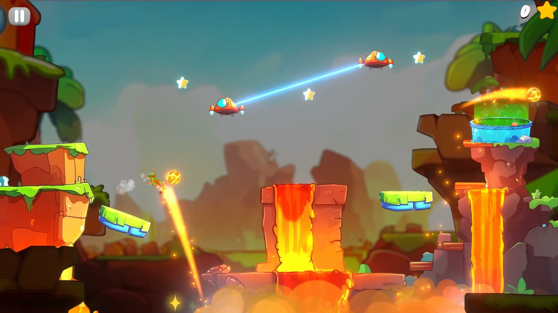 Explore vibrant hand-crafted worlds like Jungle Falls, Snowcap Base, and Desert Mirage.
