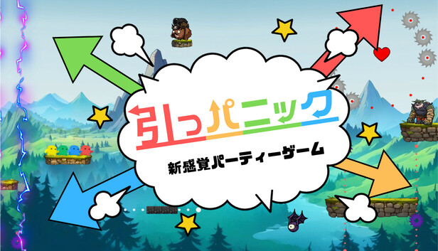 「引っパニック : 新感覚パーティーゲーム」はプレイヤー全員が同じキャラを引っ張り合いながらゴールを目指す、ドタバタ必至の2Dプラットフォーム、協力アクションゲームです。