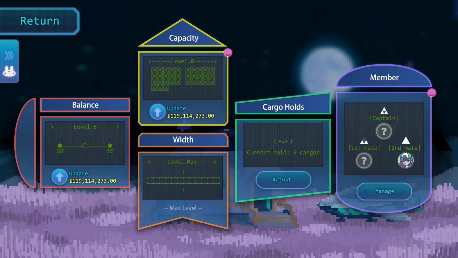 Stir the vintage cargo management system to life whenever you wish; spruce up your vessel with a quick upgrade; and wonder, who shall don the captain’s hat today?