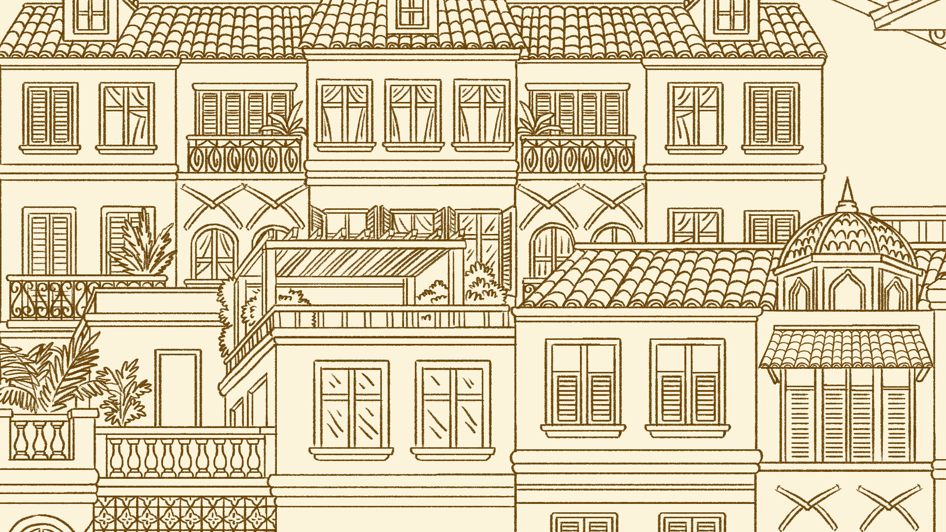 Handgezeichnete Szenen mit bunten Straßen, historischen Gebäuden und kulturellen Wahrzeichen warten auf dich.
