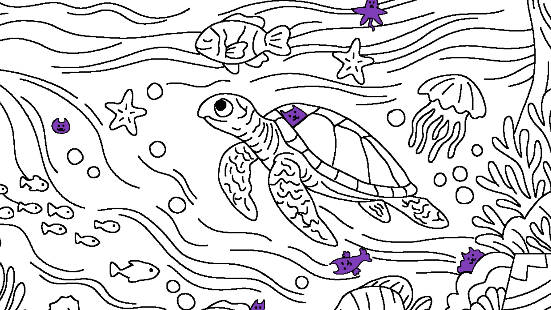 🔎 After finding the cats, 🎨 a relaxing coloring experience awaits. The game offers only color-by-numbers mode, letting you easily bring each scene to life.
