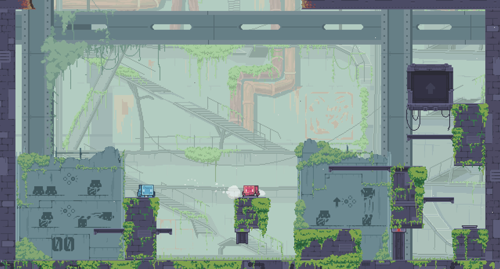 Team up with a friend in this two-player co-op adventure! Help the robots T0J1 and J1B0 climb to the top by solving puzzles and coordinating with your partner!