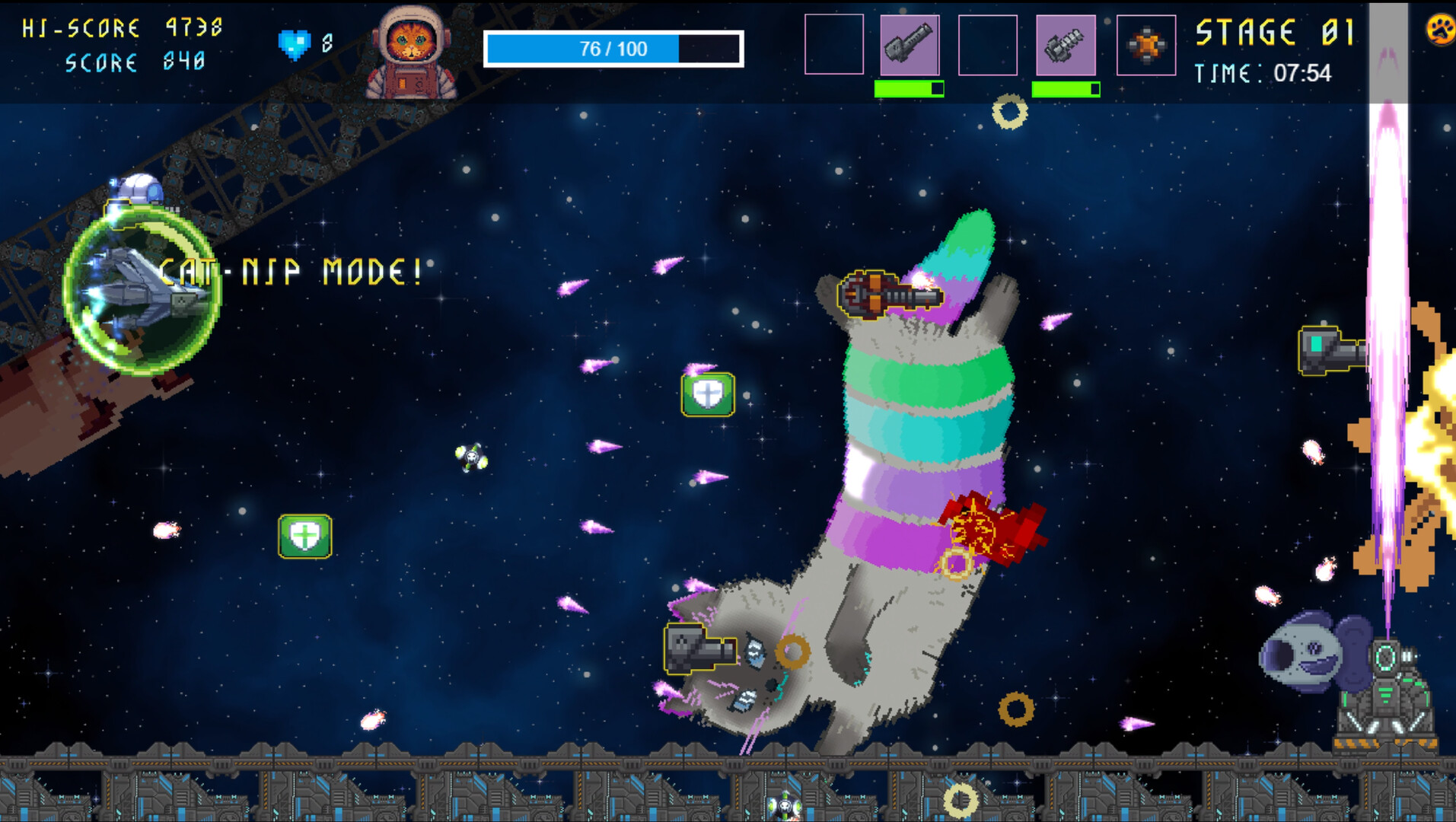 • Catnip Power-up  (Bullet time in space!)
