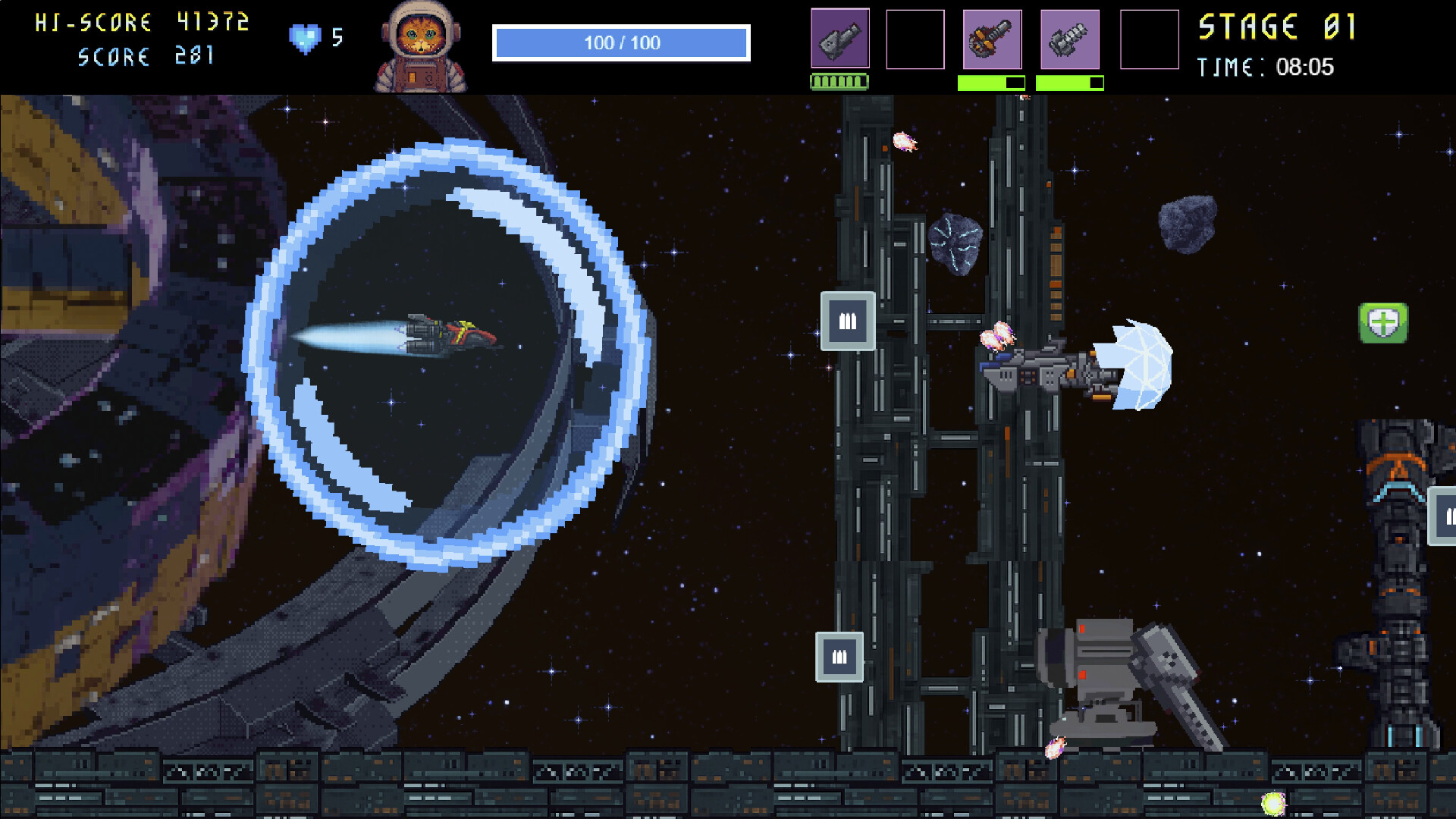 • nostalgic side-scrolling shoot-’em-up inspired by 16-bit classics