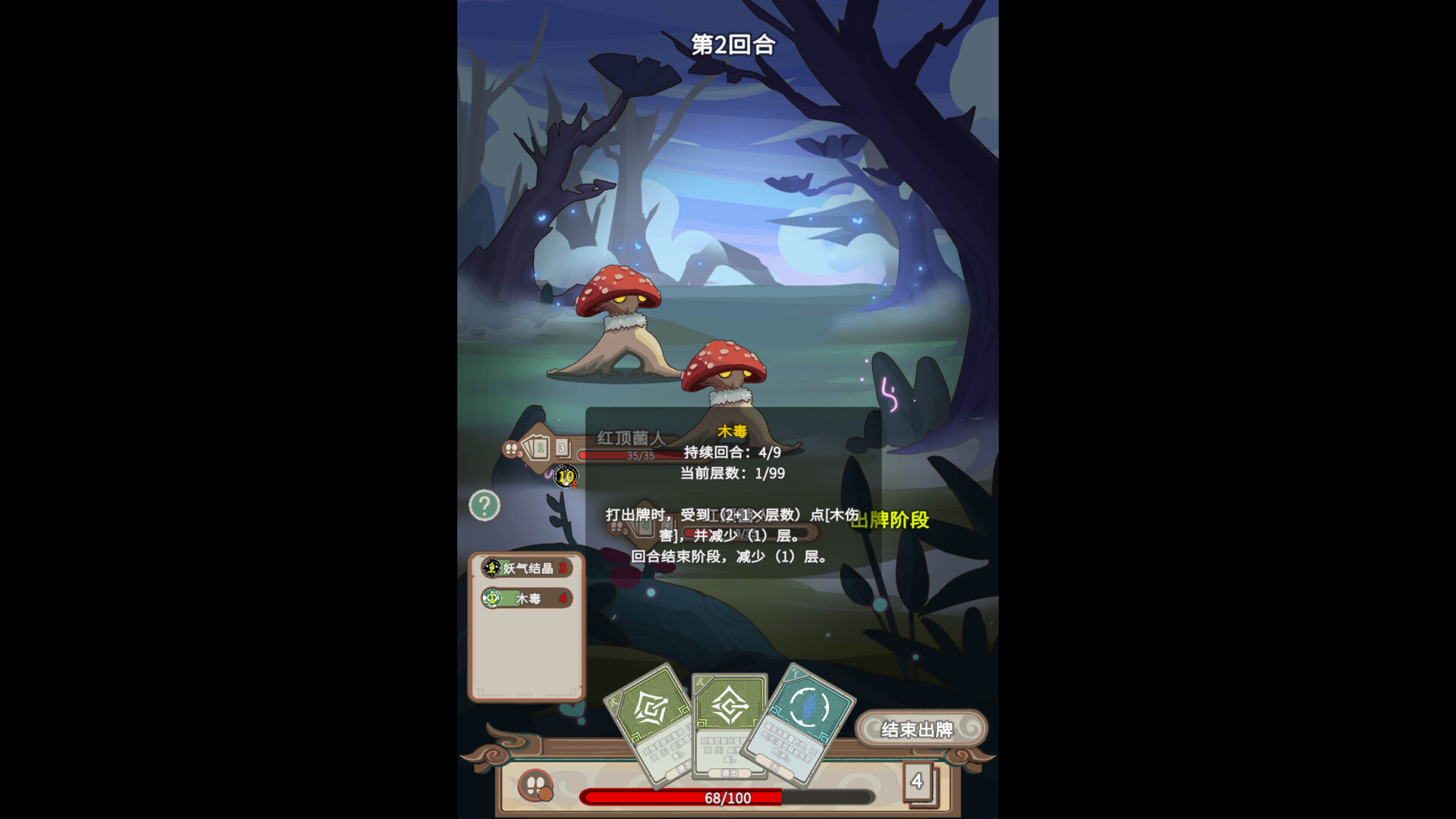 这是一个无限闯关的类rogue的卡牌构筑小游戏,游戏时长大概在4~8小时,关卡种类四个(其中一个是彩蛋关卡),主要玩法流程:随机发牌 -> 战斗 -> 选择卡牌 -> 继续闯关。