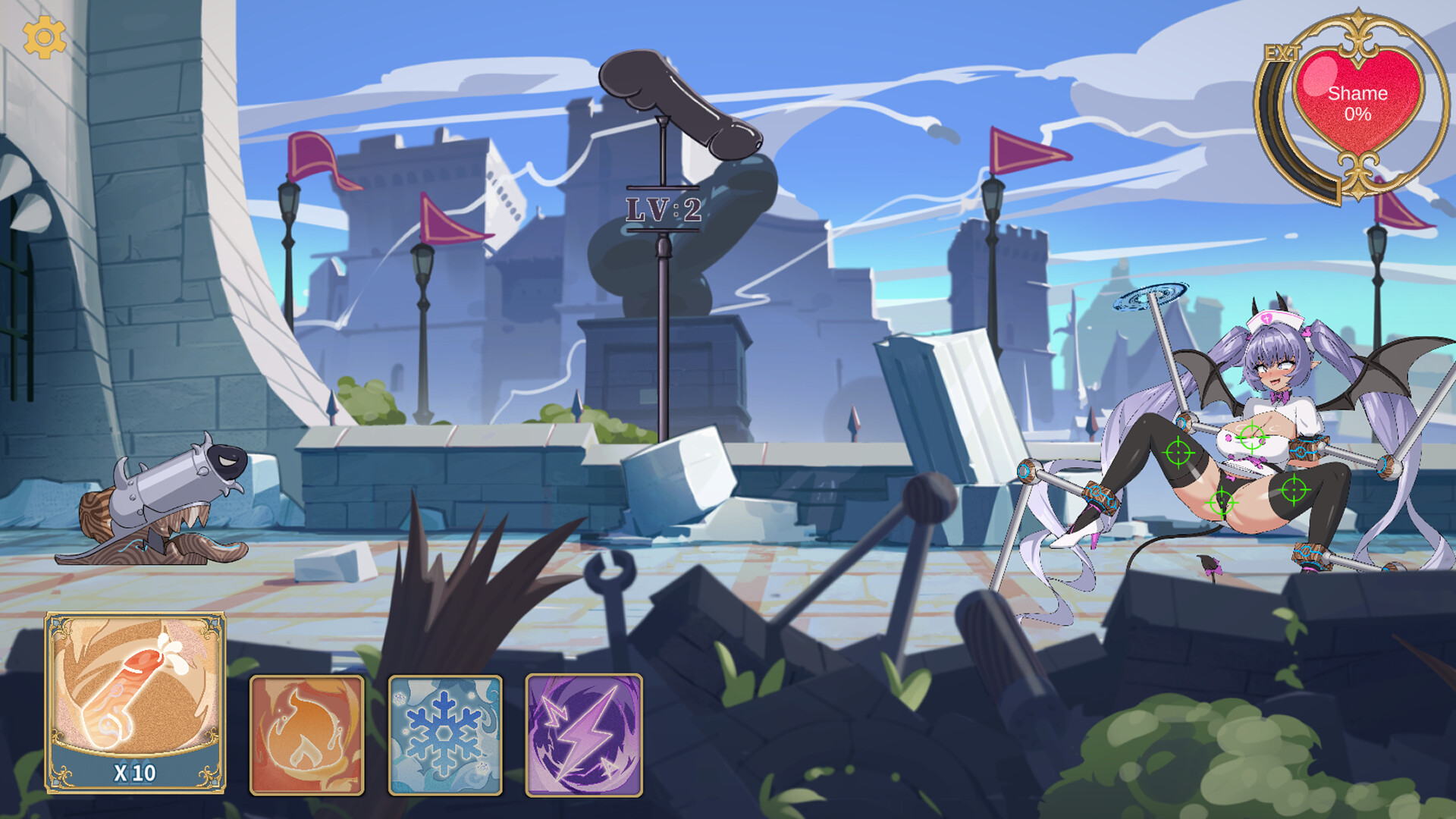 Activate the unique bullet system, each with special effects: the slippery “Essence Shot,” the fiery “Flame Shot” that reacts with Essence, or the humiliating “Phallus Curse Shot.” Each weakens the Demon Queen’s “Shame” while boosting her “Arousal,” offering a diverse and exhilarating battle experience.