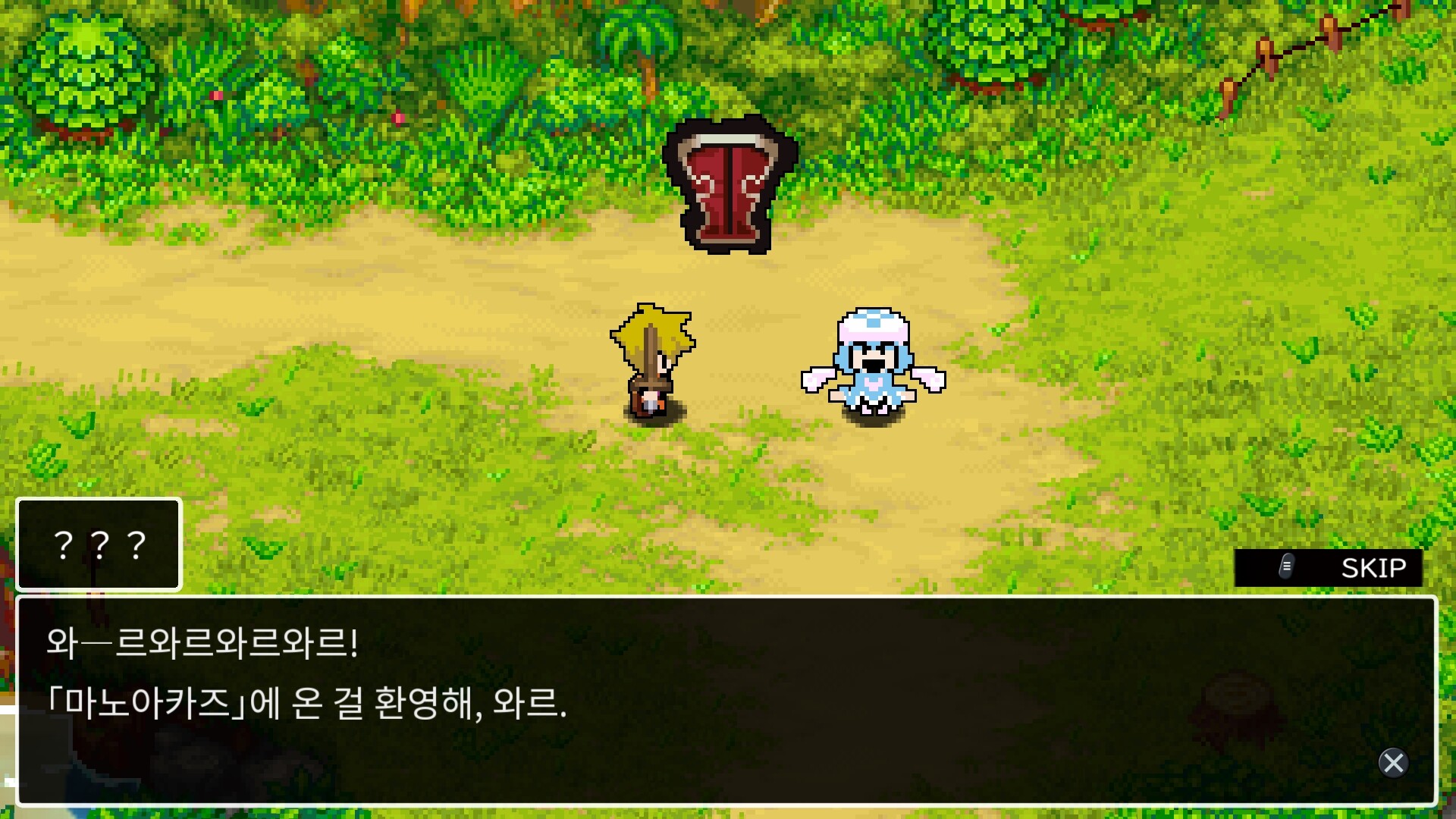 다양한 무기와 액션을 활용해 몬스터와 위험한 함정을 극복하라. 쓰러뜨린 몬스터로부터 다양한 아이템이 드롭됩니다. 플레이어 캐릭터의 외관은 게임 내 닷트 그림 도구를 사용해 자유롭게 변경 가능하며, 얼굴뿐 아니라 몸과 손발, 무기와 방패, 투척 무기까지도 자유롭게 변경할 수 있습니다. 또한 다양한 음악도 제작 가능! 자신만의 오리지널을 만들어보세요. 마장진은 배열된 칸에 '주인공'과 '조연'을 배치하고 아이템을 배치함으로써 주인공을 파워업시키는 시스템입니다. 마장진의 종류는 200종류 이상. 캐릭터 강화의 폭이 크게 확장됩니다.