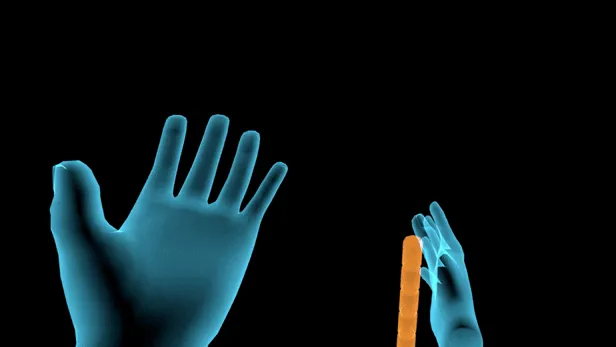 Tapping the cane on the ground triggers a sonar-like effect, briefly revealing the shapes and objects in the nearby environment through visual echoes.