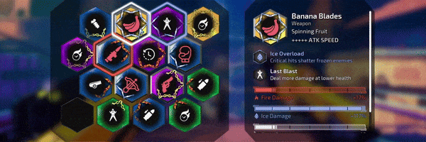 Устанавливайте на оружие улучшения, используя ячейки, расположение которых имеет важное значение: превращайте дробовики в огнеметы или, например, бананы в ядерное оружие. Меняйте улучшения местами, чтобы получать максимальные стихийные эффекты, находите мощные синергии и полностью меняйте свой стиль игры прямо посреди боя.