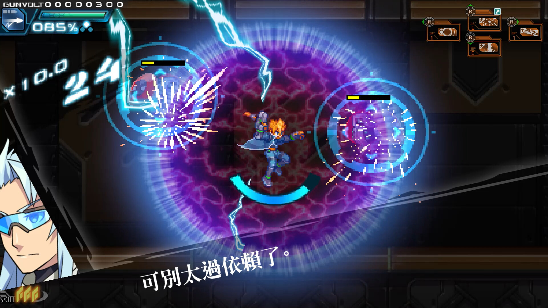 《蒼藍雷霆GUNVOLT》能夠享受高速的奔馳感,以及利用「雷擊鱗」擊倒敵人的爽快動作所帶來的樂趣。