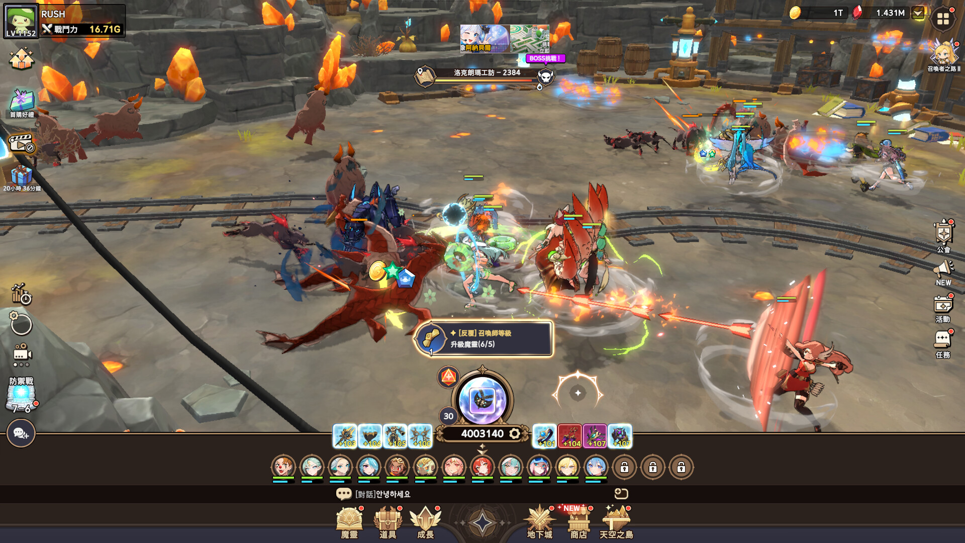 在與公會成員共同戰鬥的地下城內容中攻略Boss吧!使用自身所持的25隻魔靈搭配公會成員的25隻魔靈,共50隻魔靈參與的大亂鬥!獲得高分,挑戰公會排名頂尖寶座!"