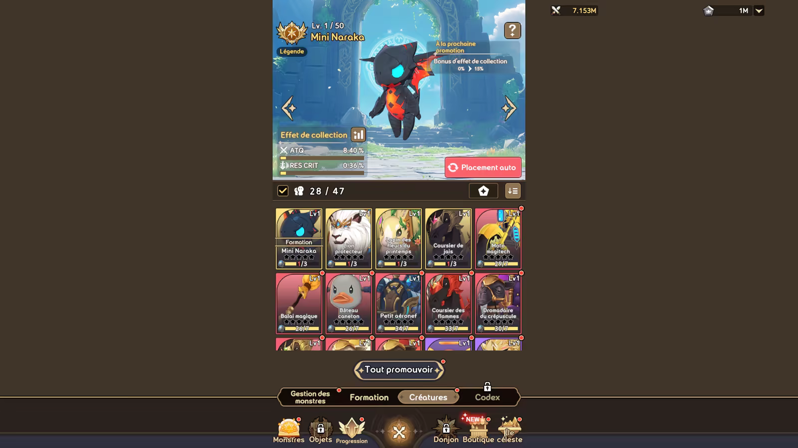 Collectionnez des créatures qui augmentent les stats de votre équipe rien qu’en les possédant ! Chaque créature améliore une stat spécifique, et ses effets augmentent encore plus avec la promotion et l'amélioration du niveau.