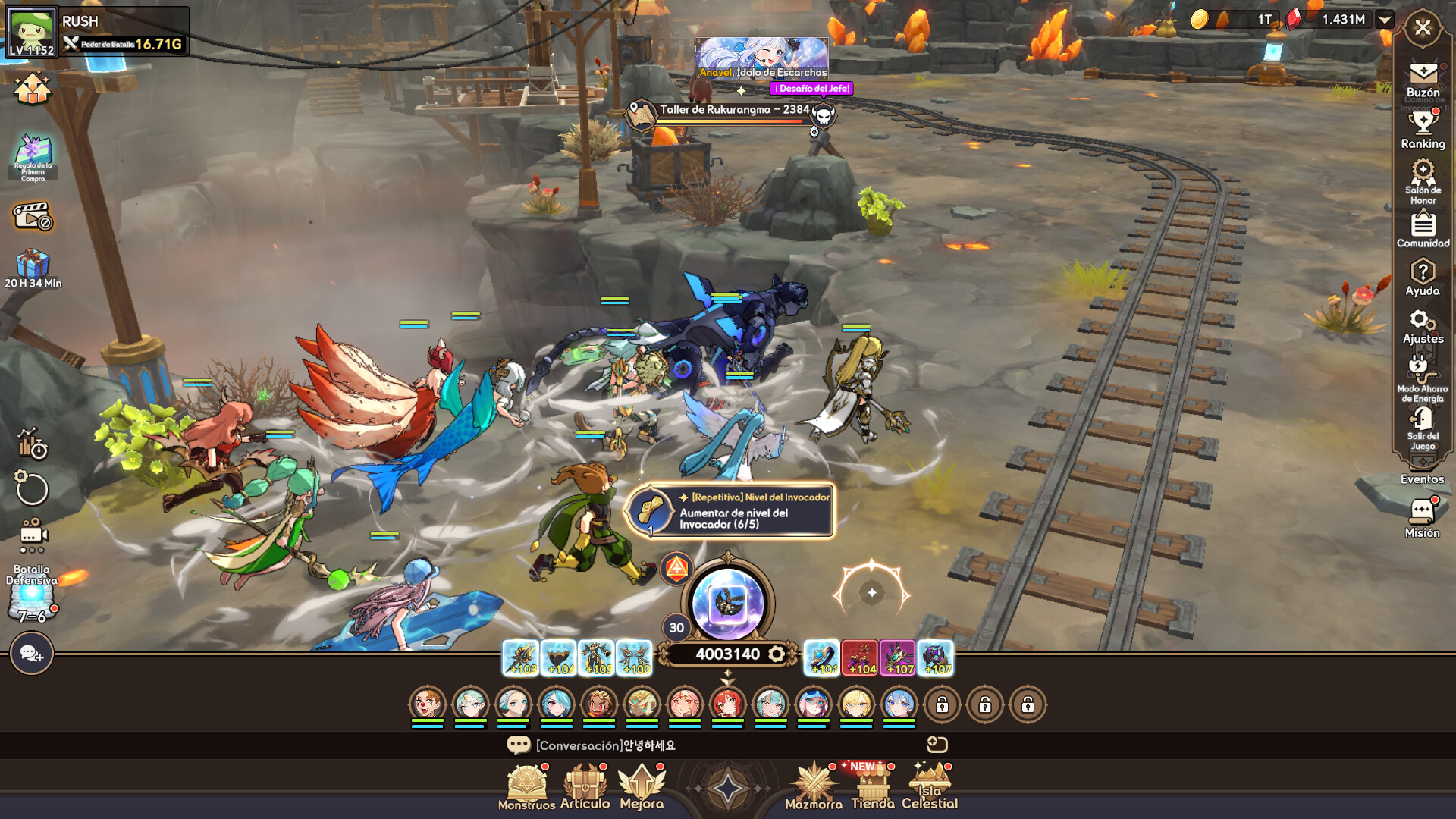 Usa Orbes Mágicos para obtener equipamiento al instante. Si el nuevo artículo es más fuerte que el equipado, se reemplazará automáticamente para aumentar tu poder. El equipamiento se obtiene incluso durante el combate, haciendo que tu progreso sea dinámico y gratificante.