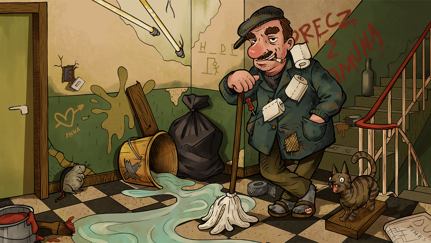 Congratulations! You’ve just been promoted to the rank of Resident Janitor™ in a glorious multi-floor concrete block full of... opportunities.