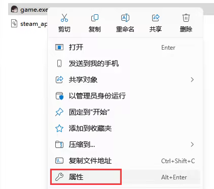2. Right-click on "game.exe" and select [Properties].