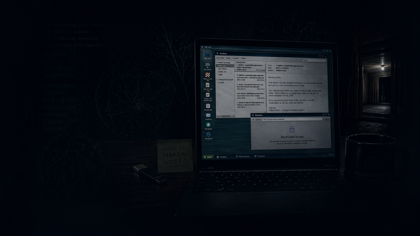 SAS // HEKS is a first-person desktop horror experience where you explore the files, messages, and systems left behind by Martin Voss. At first, it looks like an ordinary life — emails, photos, work software. Then things stop lining up.