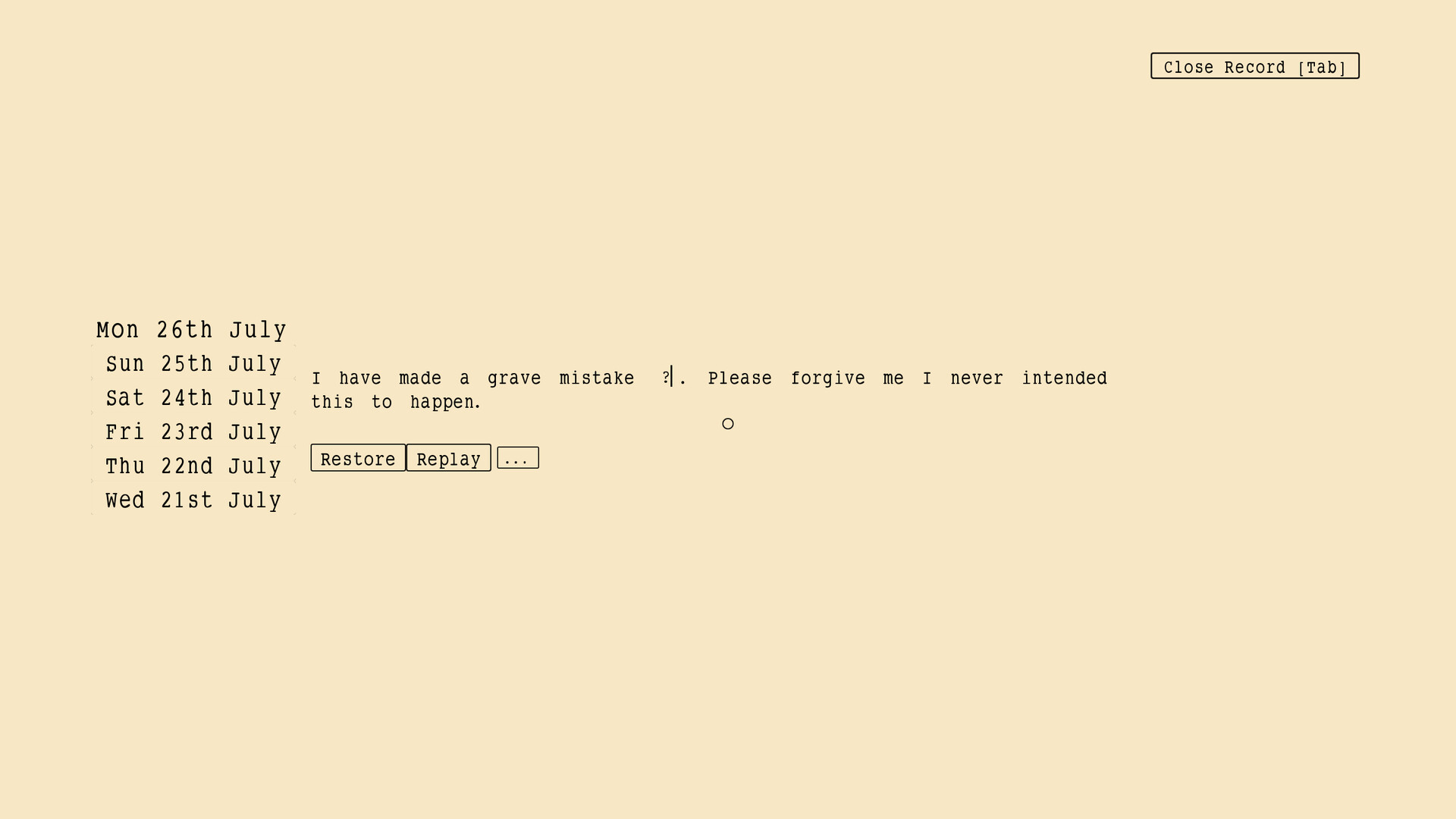 Mr Investigator is a time-traveling detective puzzler that will have you string together through grit and clever deductions, the cumulating series of events leading into an unresolved murder.