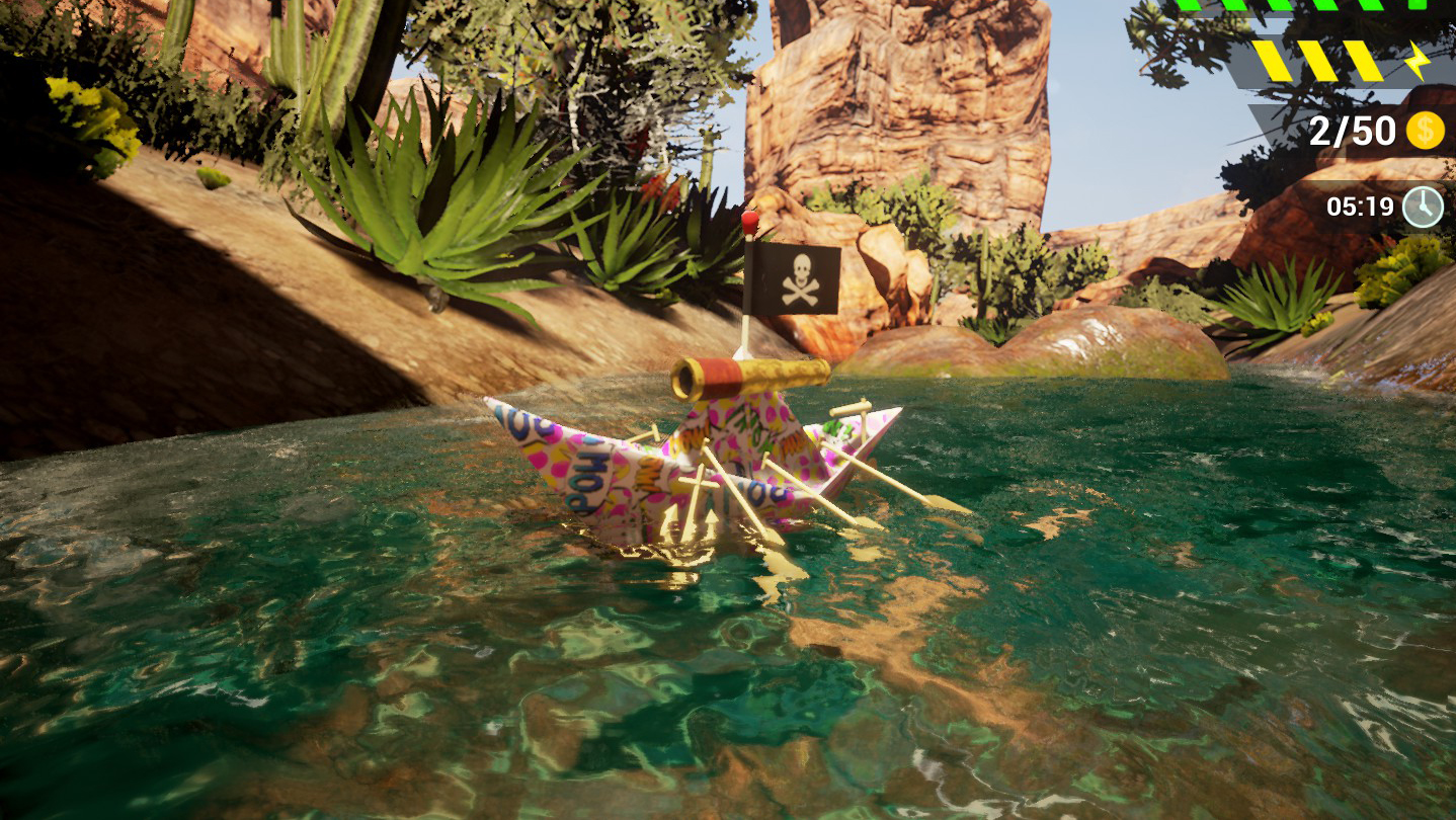 Following an optional tutorial, five varied levels are waiting for the player. The treasure cave, summer garden, forest, desert oasis and canyon are all wonderfully designed and grant an impression into what the Unreal Engine is capable of.