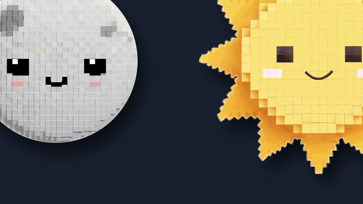 A minimalist desktop weather widget that comes to life! Watch as Sol (the sun) and Luna (the moon) react to weather changes and time of day. Each has their own distinct personality—discover their quirks as you interact! Press keys and see how Sol or Luna respond. Earn points, collect hats, and help your celestial pals thrive!
