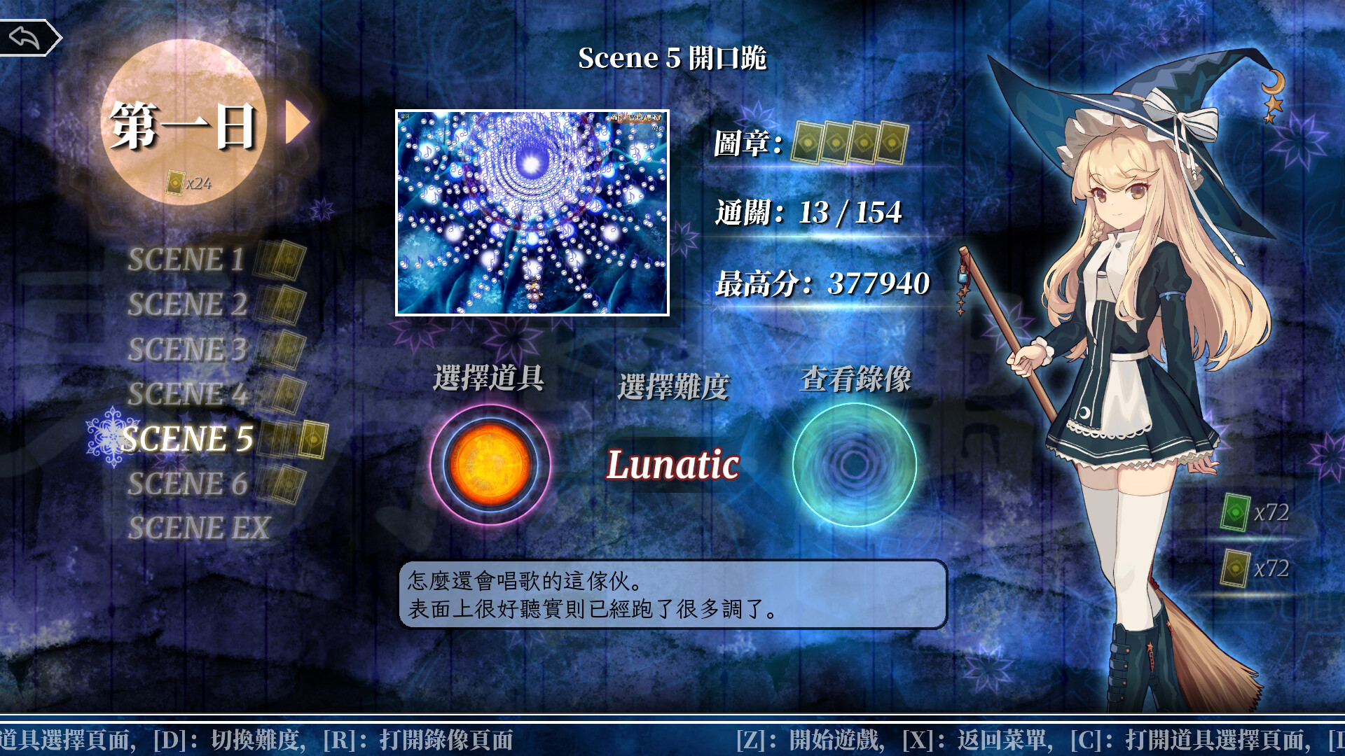 每個關卡可自由選擇難度(Easy / Normal / Hard / Lunatic),同時也可嘗試「無道具通關」來獲得更高榮譽!