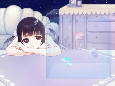 It's an action game in which the jellyfish in the aquarium comfort her as she sorrows and eases her heart. -> Carefully designed graphics and gentle sound. -> New voice cast added! -> Easy to use with just a mouse. Enjoy this miniature antique story!