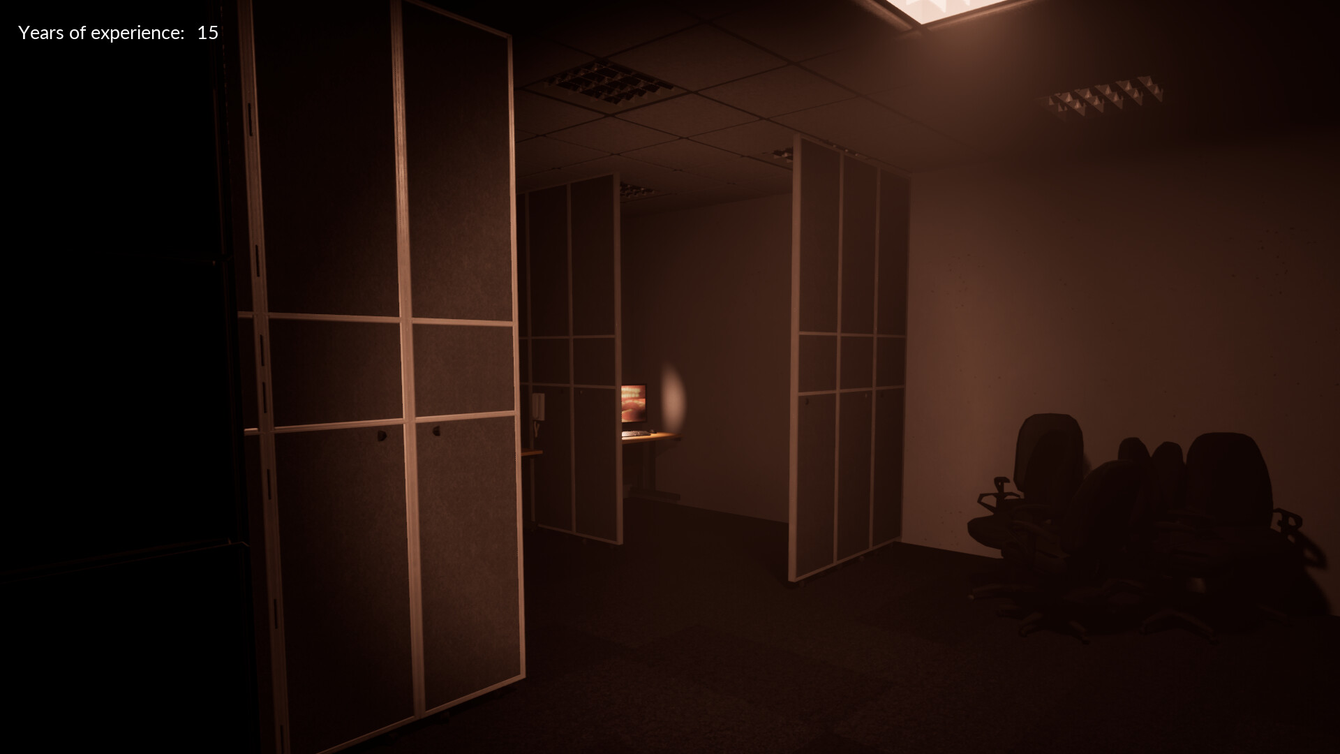 The office has ten rooms, and they get weirder the longer you survive. It starts like a normal 9 to 5. Every level is 5 years of experience, with every level reality is melting, you hear and see some strange sh*t.