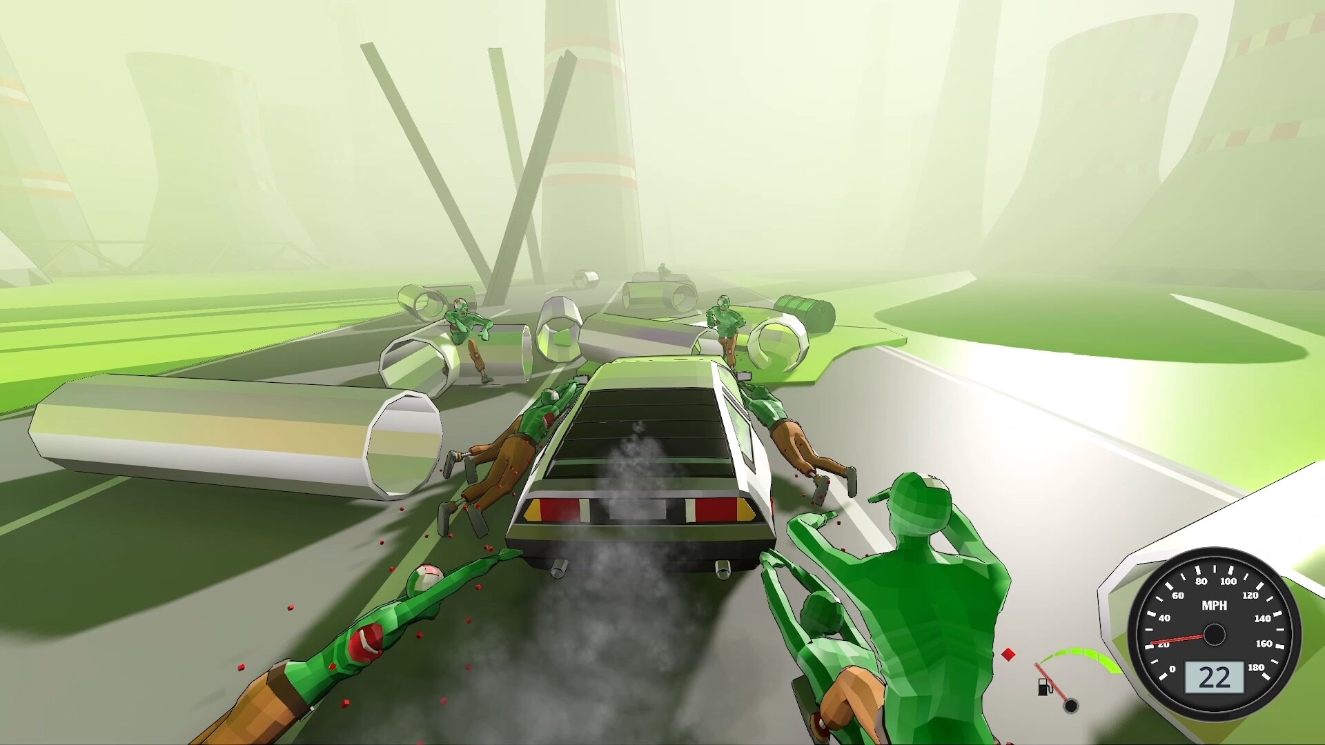 Violencia exagerada contra los zombis. Conducción a alta velocidad.