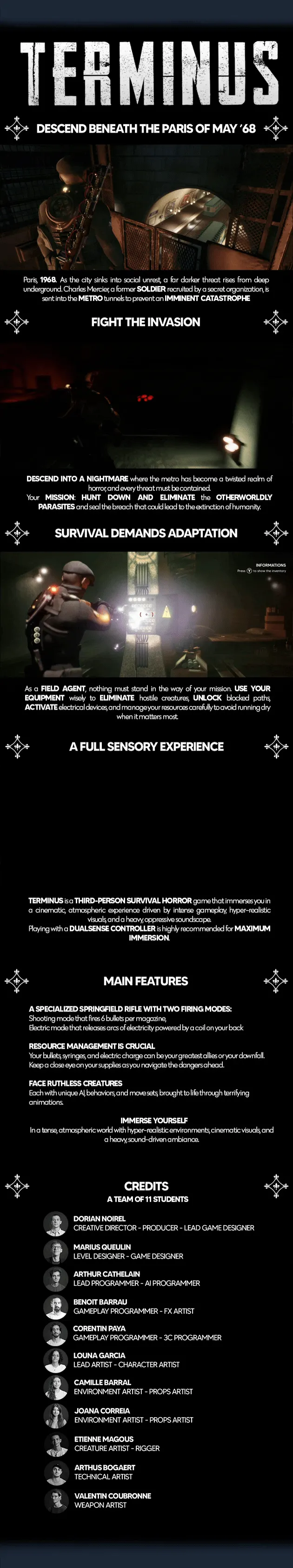 Paris, 1968. As the city sinks into social unrest, a far darker threat rises from deep underground. Charles Mercier, a former SOLDIER recruited by a secret organization, is sent into the METRO tunnels to prevent an IMMINENT CATASTROPHE.