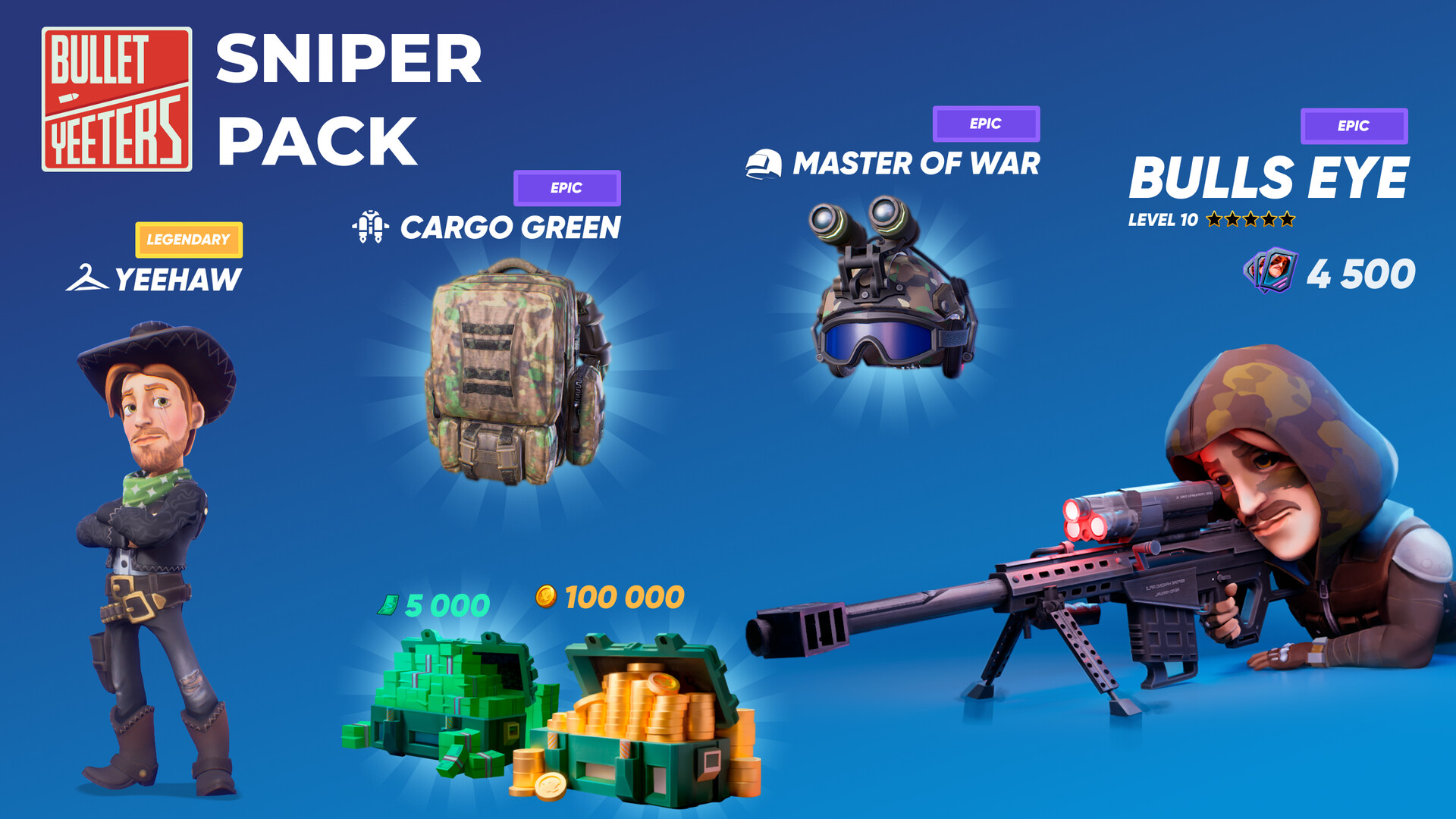 🎯 Bulls Eye Cards x4,500 – Upgrade and sharpen your sniper skills.