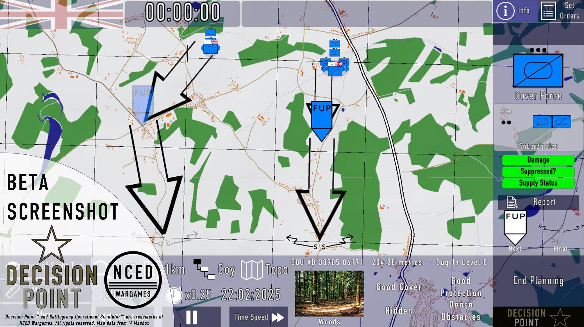 Plans meet friction in Decision Point, a wargame where you issue NATO-standard orders, observe AI execution in real time, and adapt as the battlefield evolves. At key Decision Points, the action pauses—giving you time to reassess, redirect your forces, and outmanoeuvre the enemy.