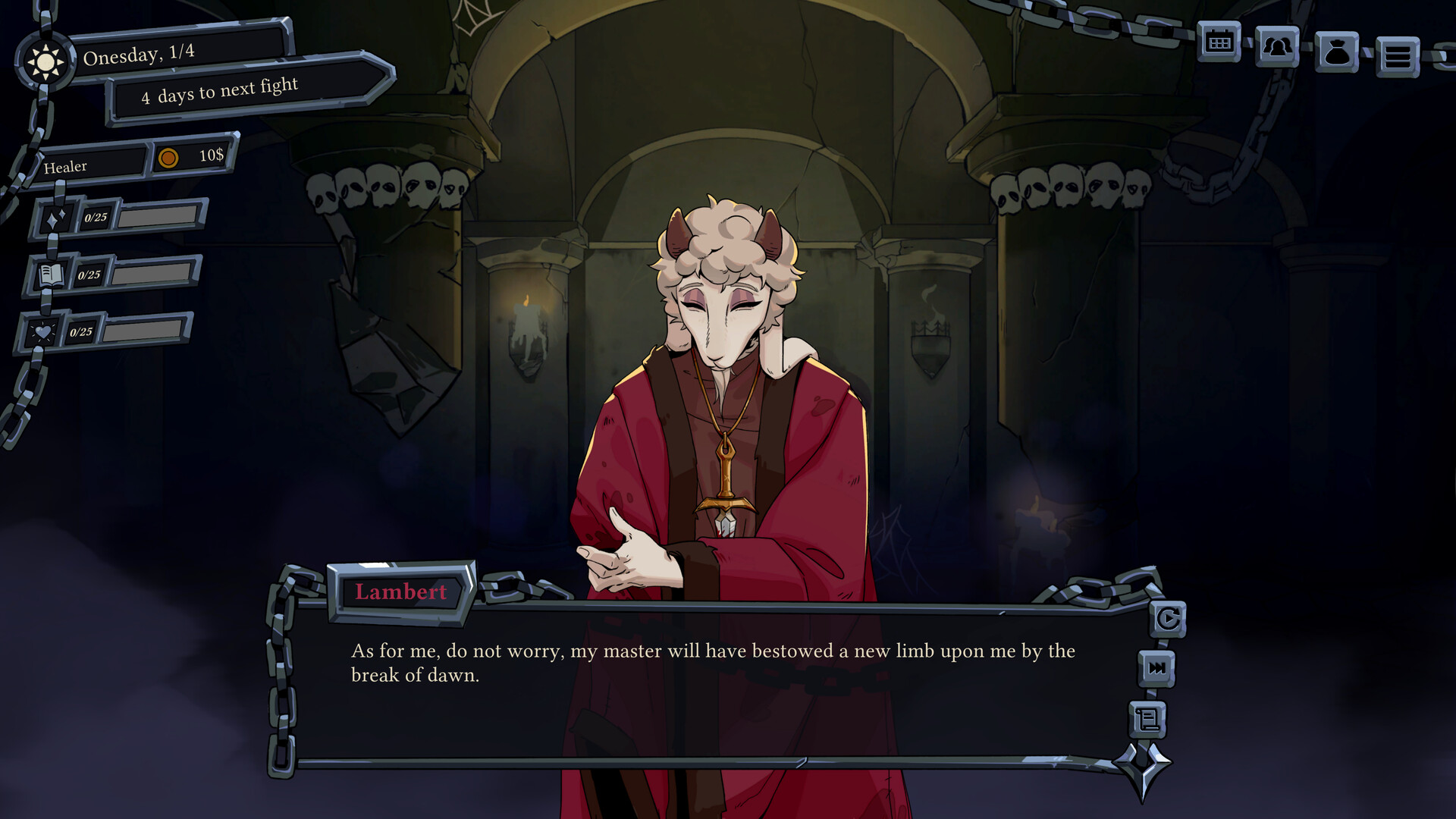 You have been imprisoned in the royal dungeon. Forced to participate in weekly gladiatorial combat, you will surely die unless you make some powerful friends.