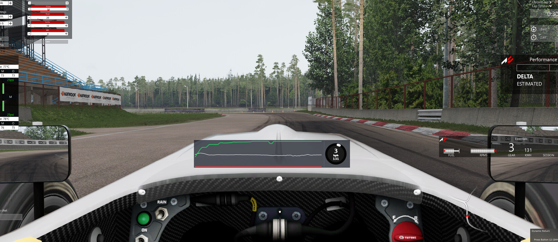 • Use built-in overlays for standings, relatives, track map, weather, wind, flags, telemetry, blind spot alerts, pitlane helper, ABS, and more