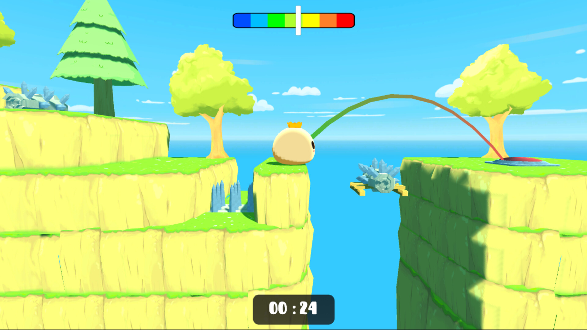 In words, it's simple. One eye on the slime, the other on the Power Scale. Stop the slider at the right place on the Power Scale with the "Space" key and make a jump. It will determine the strength of EVERY jump.