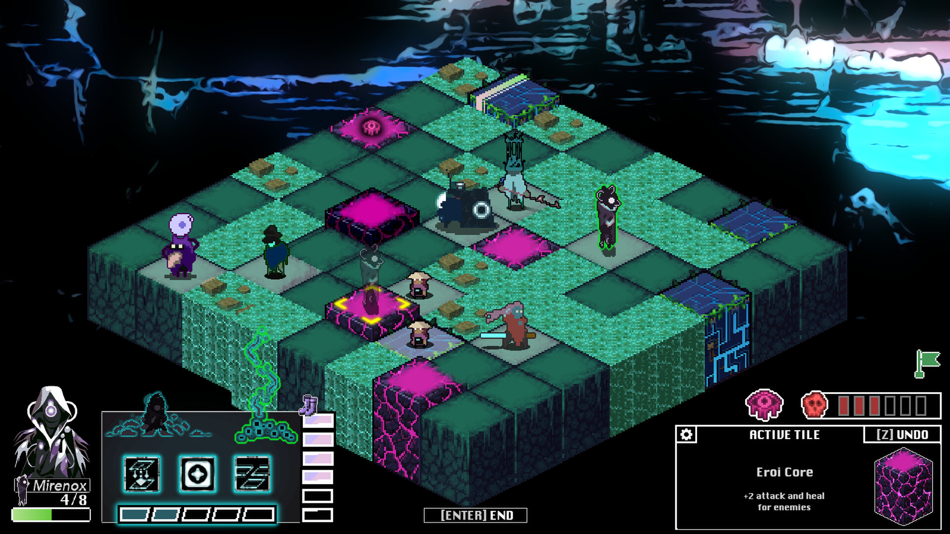 Cleanse infected Eroi tiles, manipulate the grid, and outmaneuver your foes before it fractures beneath your squad.