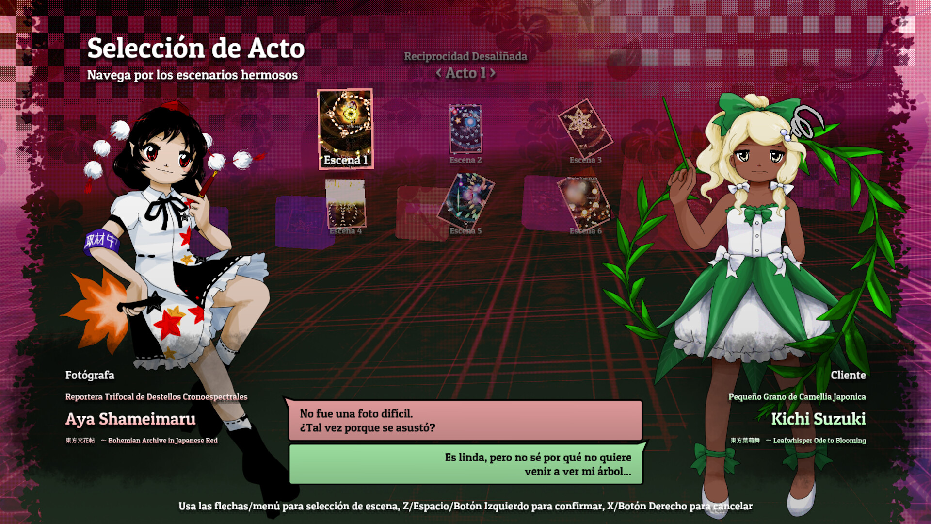 NOTA: Este juego es un proyecto fanmade sin relación con Team Shanghai Alice. Todos los personajes presentes están autorizados por pautas preestablecidas o con permiso explícito de sus autores originales.