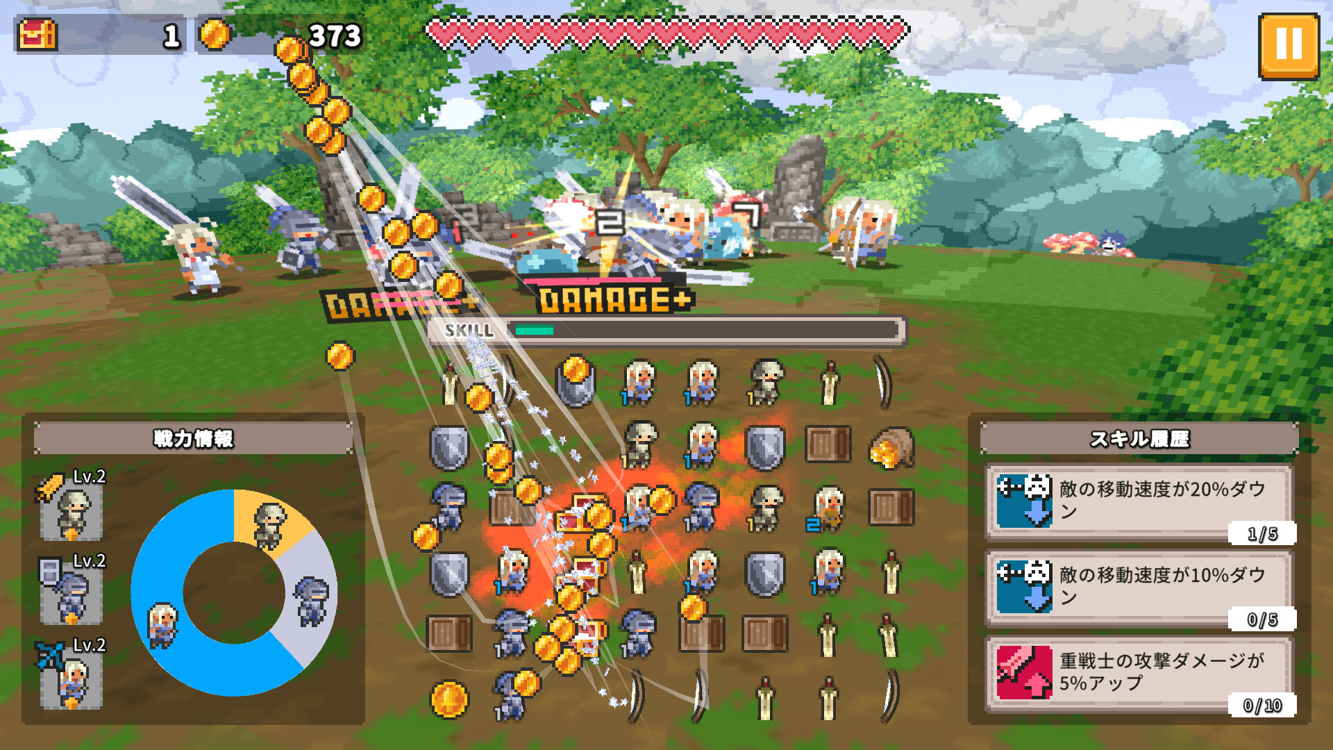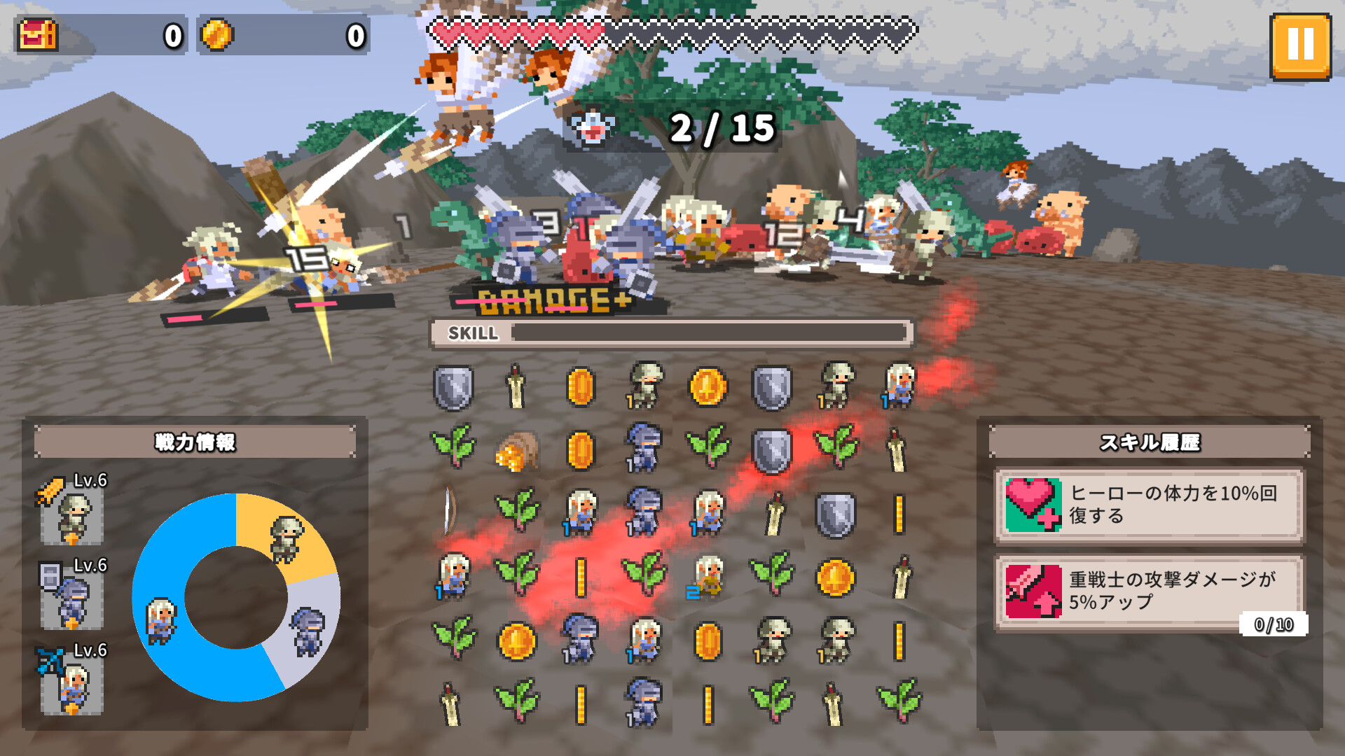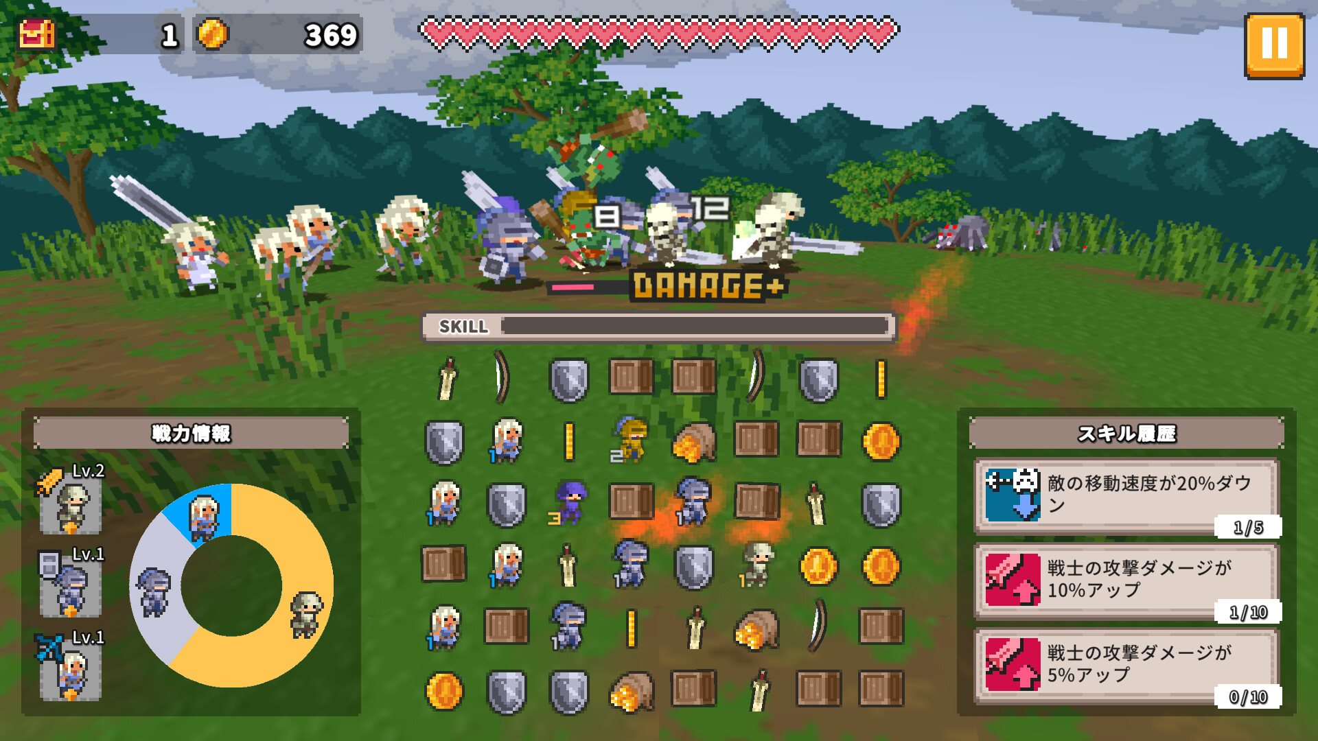 英雄が率いる軍団の軍師となって部隊を指揮し、モンスターたちを撃退して王国を守り抜くマージパズルとバトルが融合したRPG!