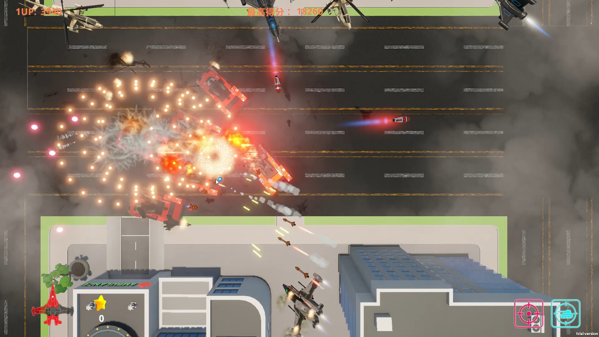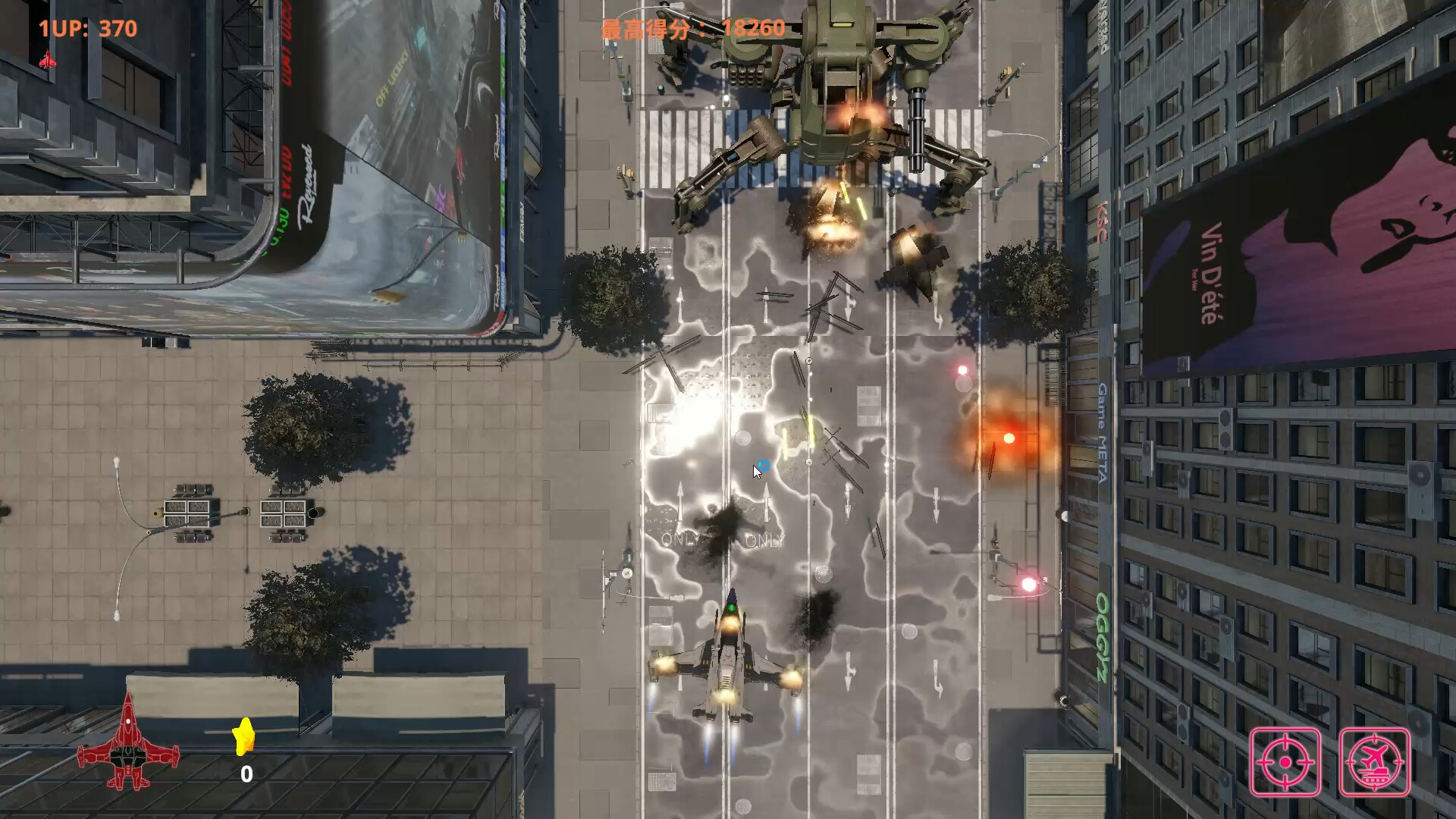 Enjoy fast-paced bullet hell action with upgradeable weapons, homing missiles, lasers, and powerful bomb attacks. Smart enemies take cover behind structures and strike from above and below, forcing you to maneuver, dodge, and dominate a battlefield that spans both altitude and tactics.!