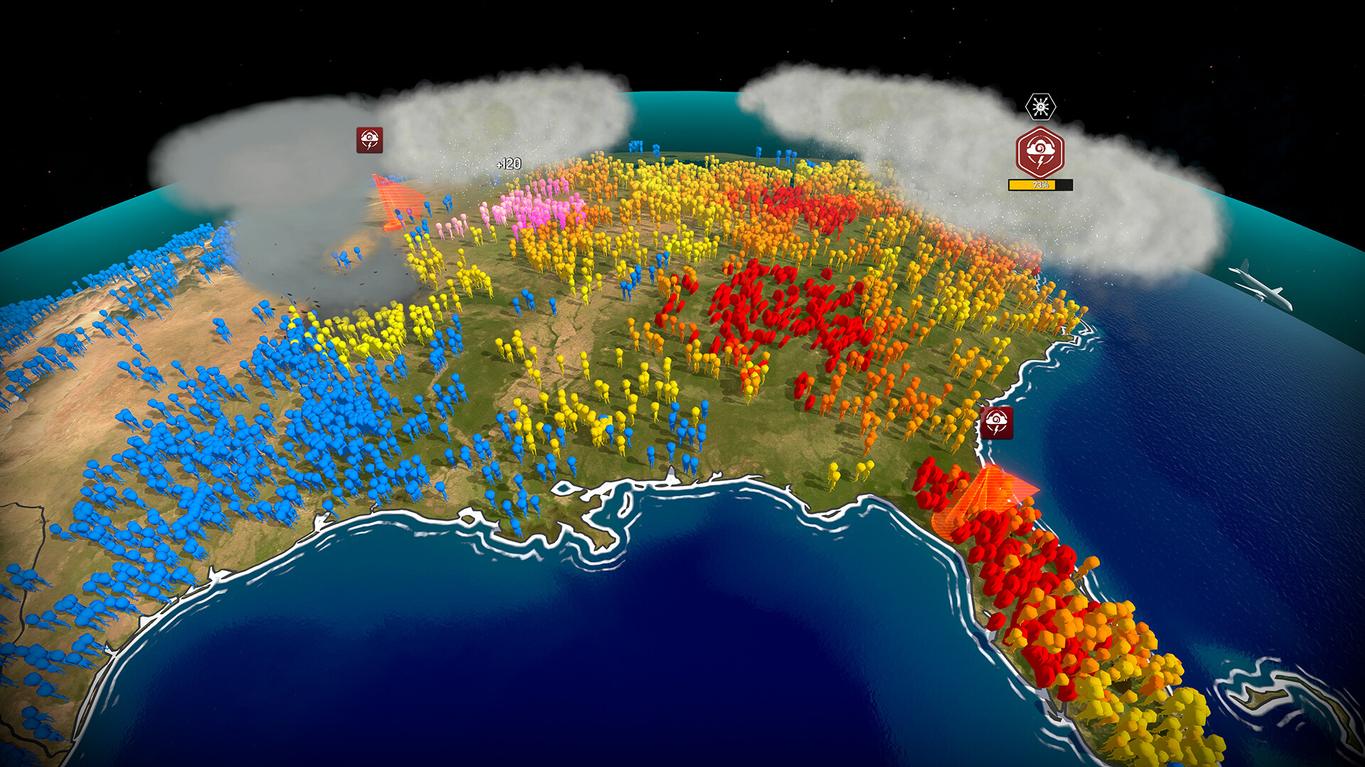 Our unique technology simulates over 80,000* humans simultaneously on screen as you deploy devastating plagues, natural catastrophes, global conflicts and more tragedies. Designed using real-world data for an authentic simulation of humanity’s downfall.