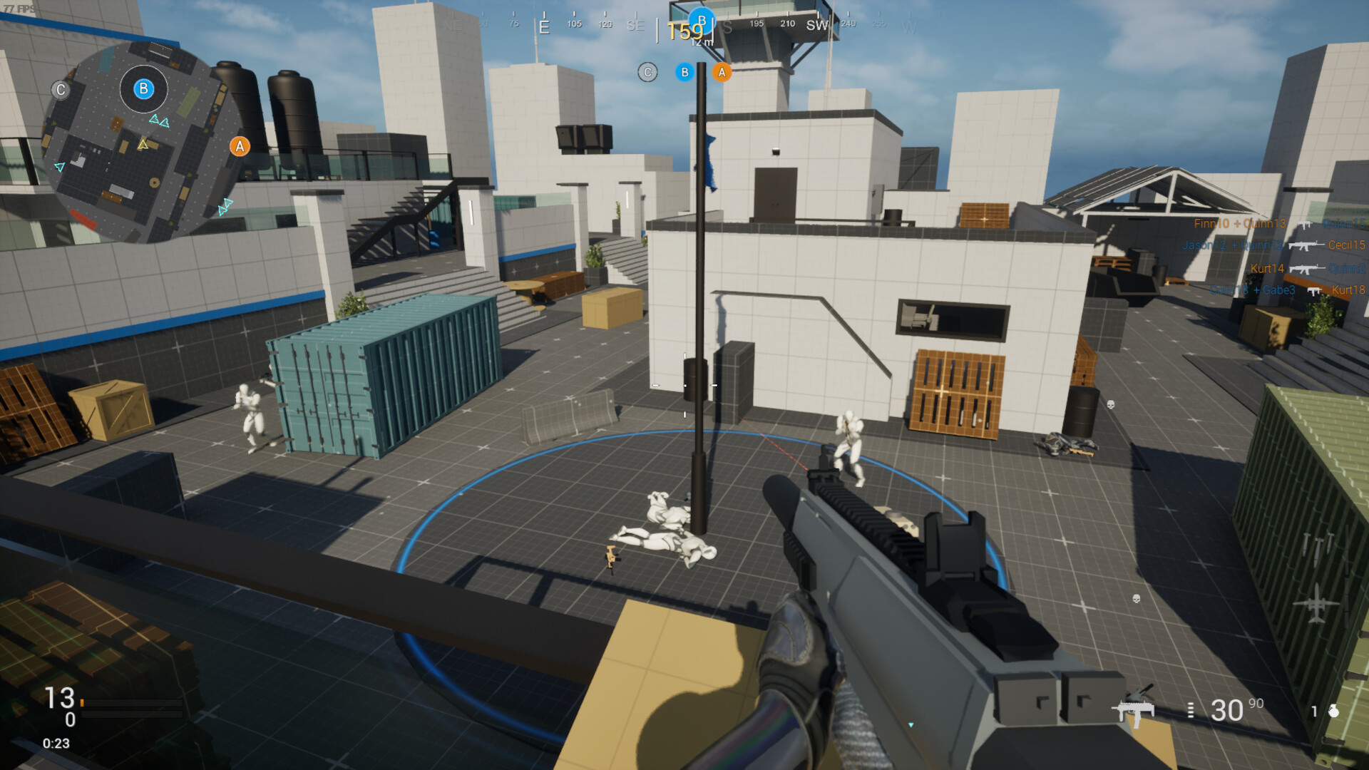 FPS: Multiplayer ist ein Online Shooter Spiel, mit 7. verschiedenen Game Modes. Sind sie bereit, sich der Herausforderung zu stellen ? Sie können auch ganz Stressfrei, Offline gegen A.I. Spieler (Bots) mit 3 verschiedenen Schwierigkeitsgraden spielen.