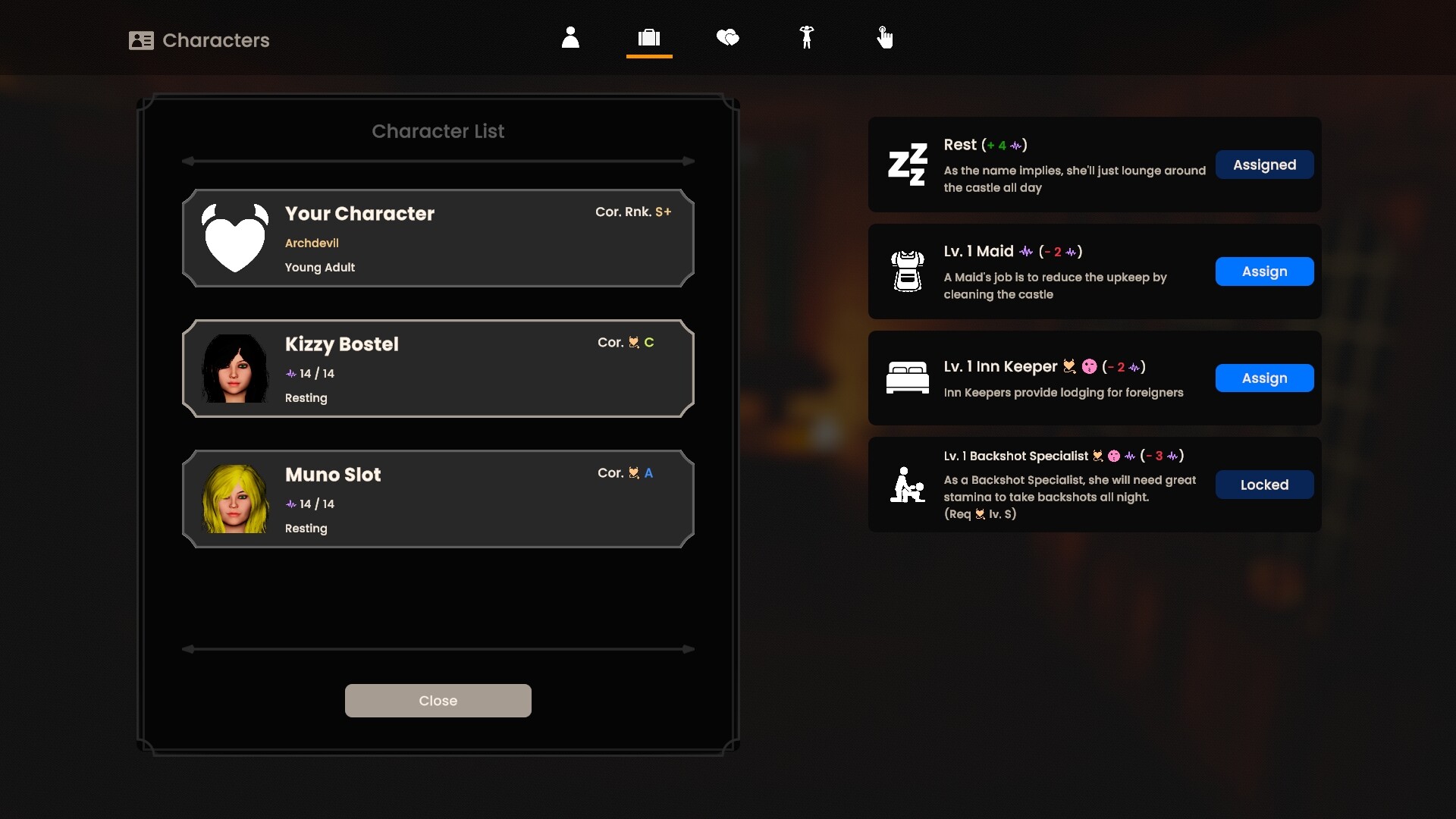 • Interview women at your throne and decide if they have the physical attributes to work in your brothel.