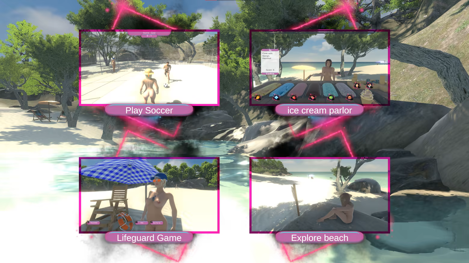If you're still bored, there are a few mini-games you can play on the beach, such as the ice cream parlor simulator, where you serve ice cream to naked beachgoers, but you have to do it in the right order. Furthermore, there is the possibility of playing soccer against a naked NPC.