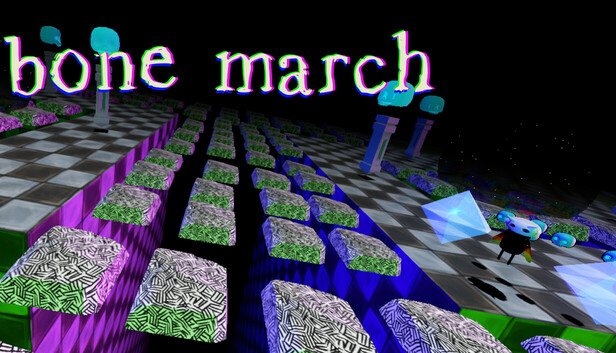 Inspired by classic score attack arcade games, Bone March is a single-stage arena survival game that sets the player a simple task: Last as long as you can.  Bone March features two-joystick differential steering "tank" controls, which combines coordinated inputs from both joysticks to move in intuitive and versatile ways.
