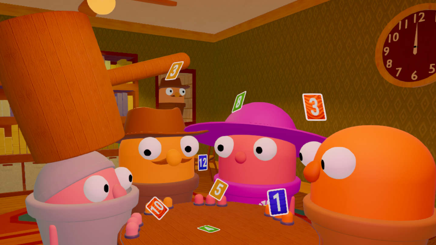 Play online with friends (2–4 players) or offline against lively AIs that act like real players. A full session takes about 8–13 minutes. Each player has their own 48-card deck (four colors, numbers 1–12), so every round feels fresh and tactical.