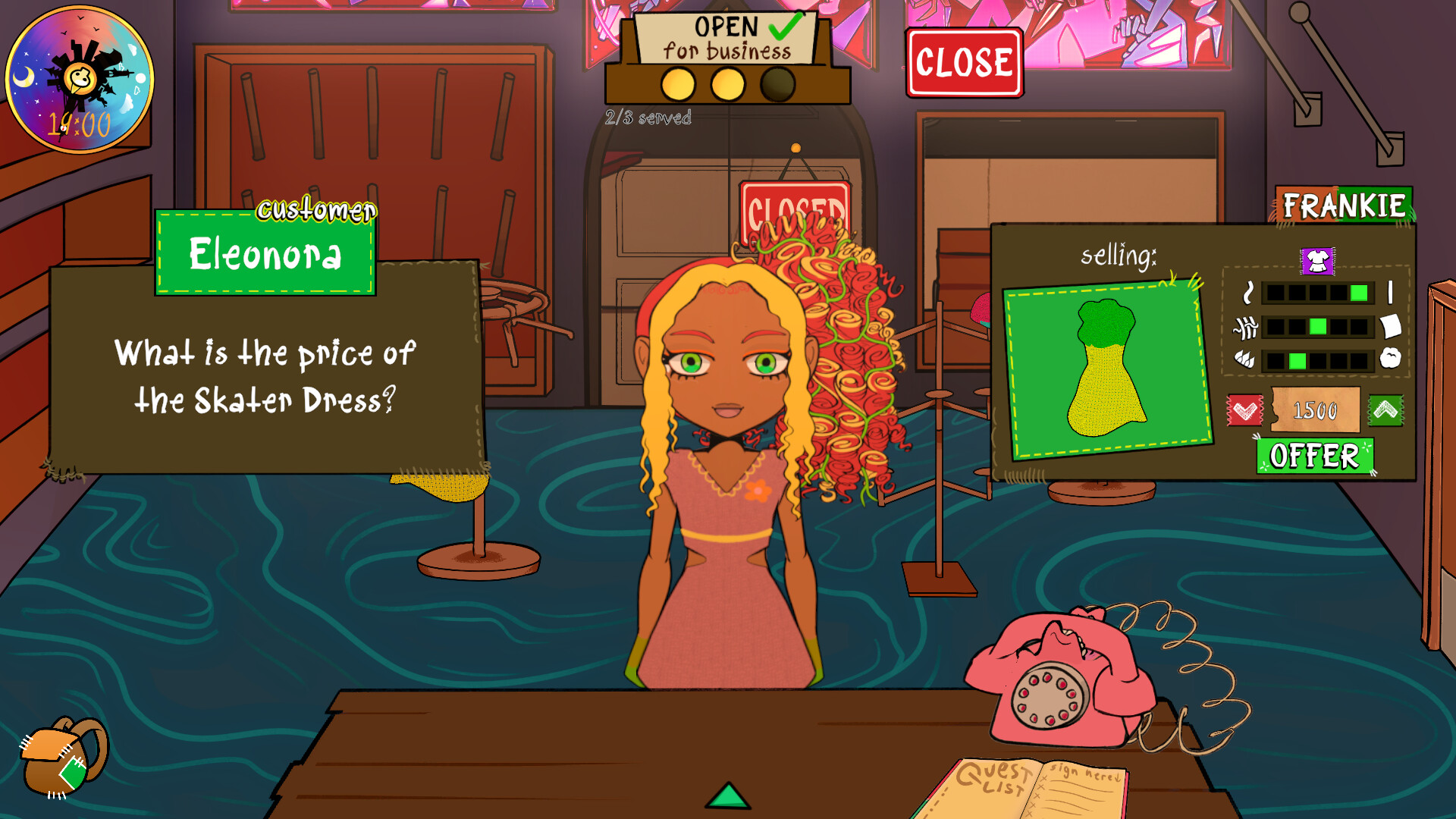 Loom n’ Doom is a 2D Crafting Tailor Shop Sim set in the quiet shadow of the end. A strange prophecy claims that only those wearing "The Pattern of the Beyond" will endure what’s coming. As the city’s last weaver, you must dye, cut, and stitch garments that blur the line between fashion and survival. Negotiate with your monster clientele and decide: who is worthy of being woven into the world that comes next?