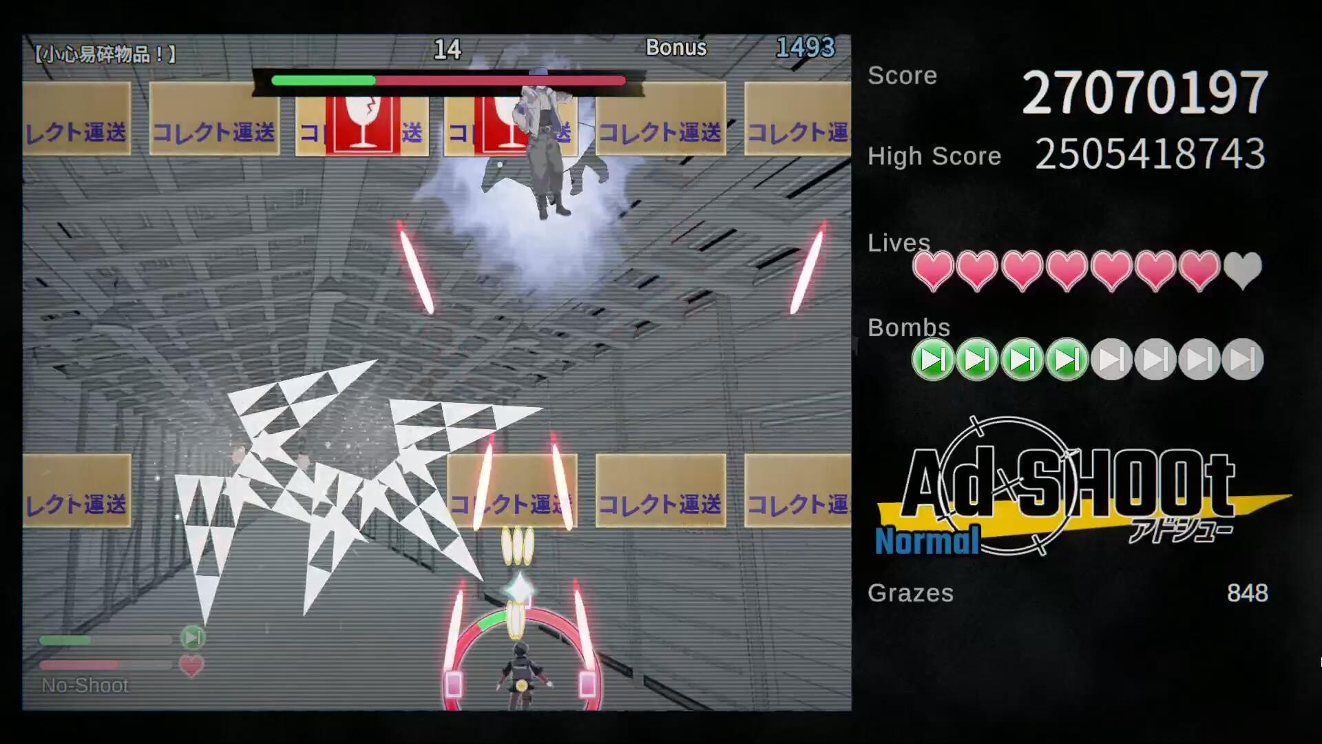 縱向卷軸 STG《Ad SHOOt》中,7 個關卡與 7 位頭目各有專屬主題曲。本原聲帶共收錄 18 首音樂,除了上述 14 首外,還包含標題畫面與結局等 BGM。
