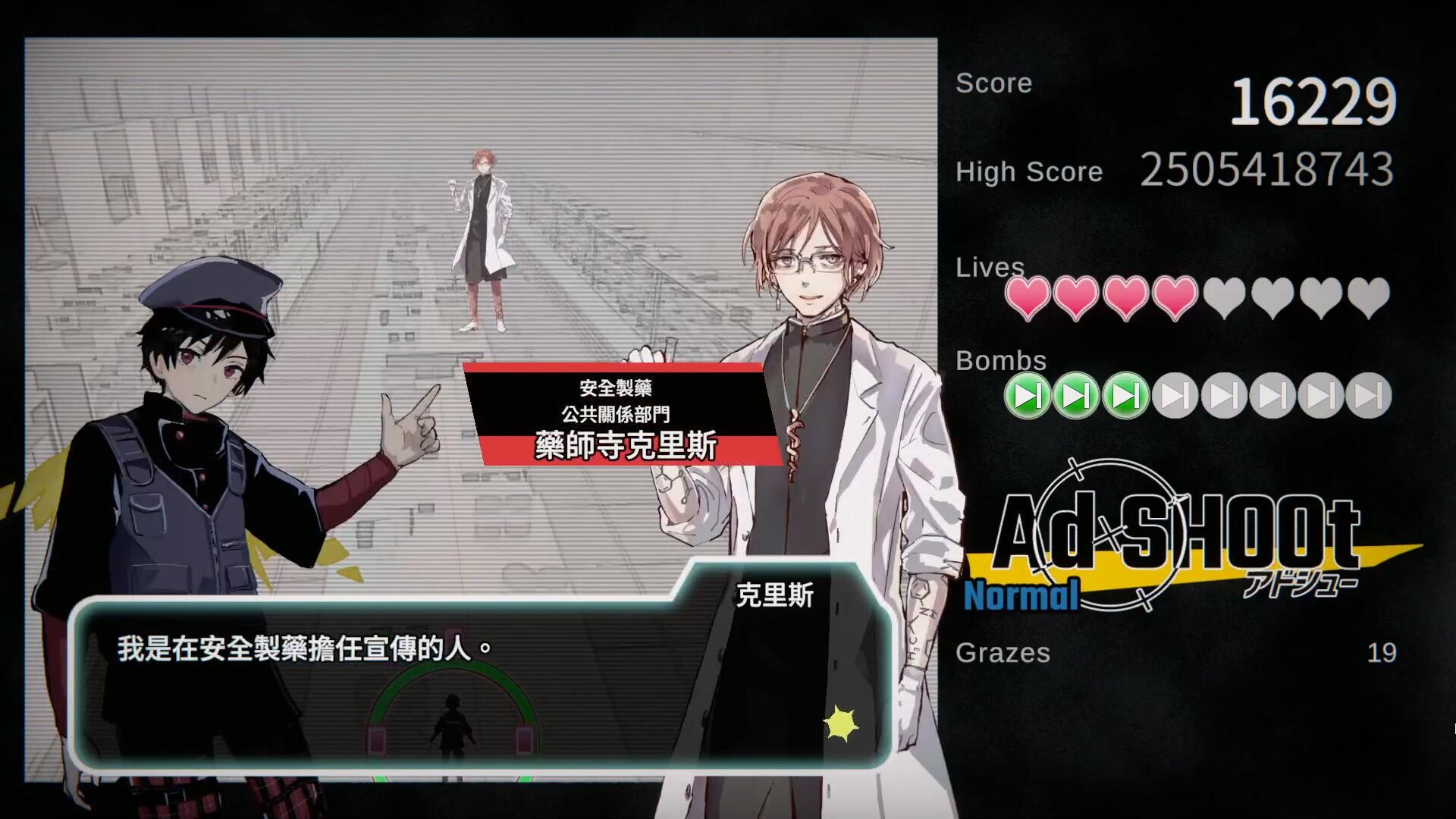 縱向卷軸 STG《Ad SHOOt》中,7 個關卡與 7 位頭目各有專屬主題曲。本原聲帶共收錄 18 首音樂,除了上述 14 首外,還包含標題畫面與結局等 BGM。